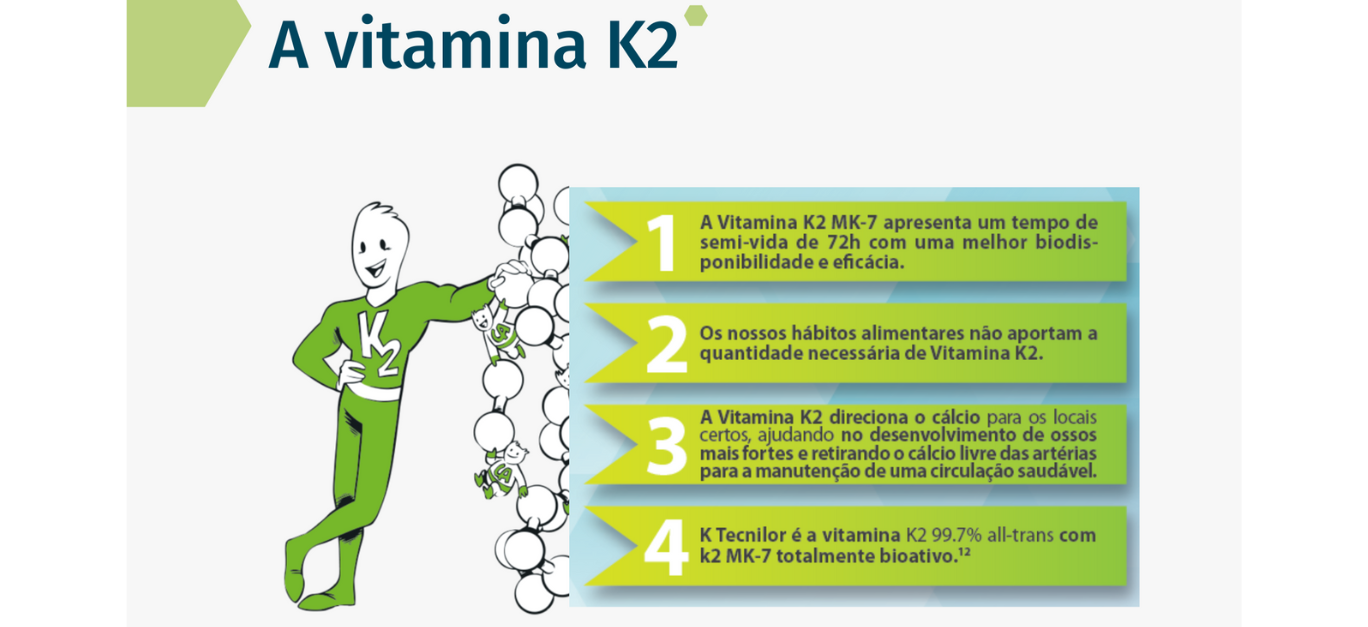 Trata-se de uma proteína capaz de ligar o cálcio à matriz óssea, reforçando, assim, o esqueleto. A atividade da vitamina K2 insere-se num aumento no processo de formação de osso e diminuição de perda óssea.
